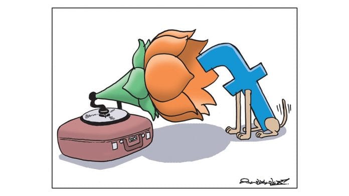 In today’s featured cartoon, Mahamud reimagines Francis Barraud’s iconic painting titled His Master’s Voice in a dig at the alleged nexus between Facebook and the BJP.