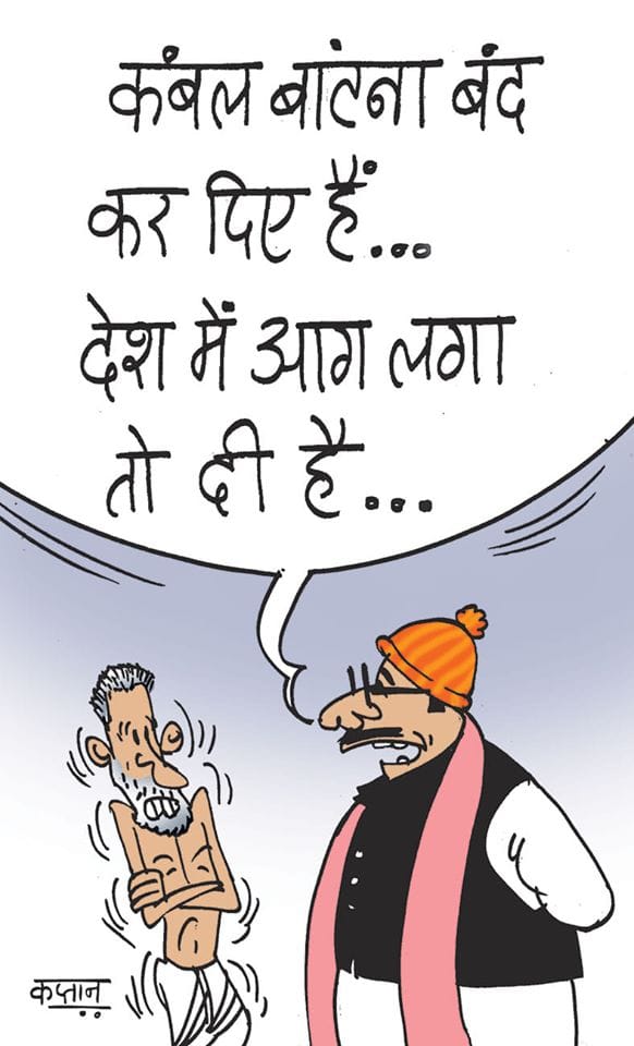 In today’s featured cartoon, Aravinda Tegginamath comments on the communal disharmony in the country by invoking the 1977 Hindu film Amar Akbar Anthony.