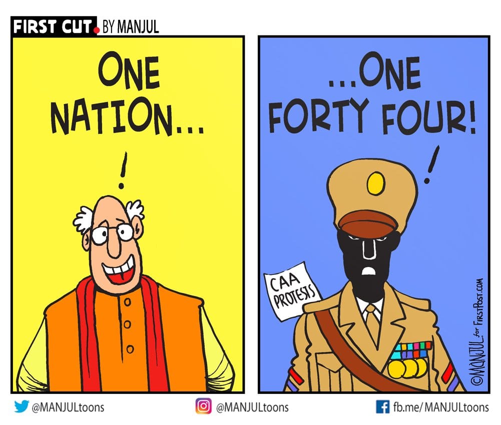 With Section 144 imposed in many parts of the country, Manjul mocks the government for its “one nation” proclamations.