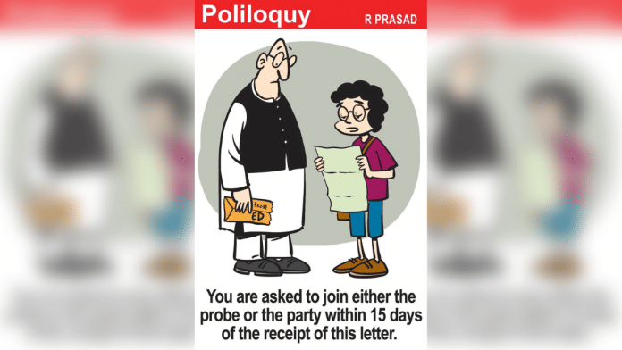 In today’s featured cartoon, R. Prasad comments on Congress leaders Sonia and Rahul Gandhi being summoned by the Enforcement Directorate in connection with a case of alleged money laundering, at a time when at least two of their party’s prominent leaders — Hardik Patel and Sunil Jakhar — have jumped ship to the BJP.