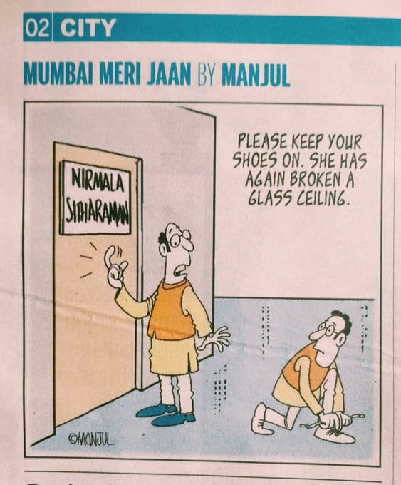 Manjul, for Mid-Day, suggests Nirmala Sitharaman has broken the glass ceiling again by becoming the first full-time Finance Minister of India. In the previous Modi government, she made history by becoming the first full-time Defence Minister.