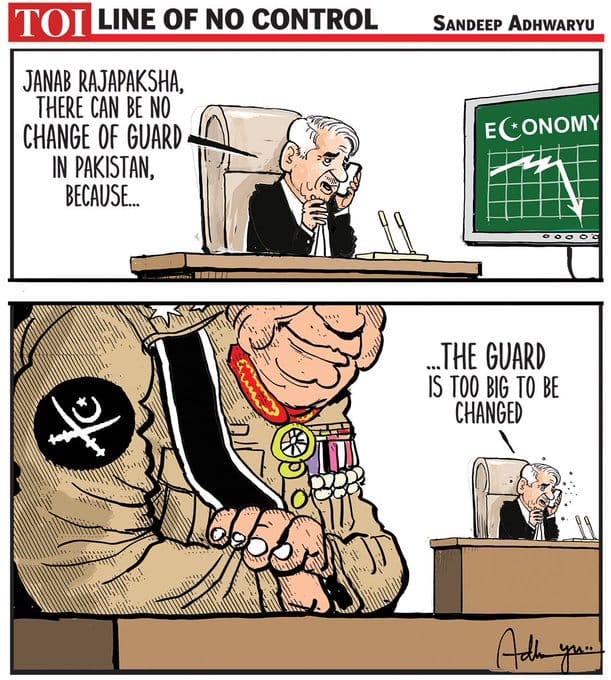 Alluding to the economic crisis in Sri Lanka which forced the Rajapaksas to vacate their seat of power, Sandeep Adhwaryu comments on how the power structure in the island nation is different from political realities in Pakistan – also seeking an IMF bailout – where the Army calls the shots.