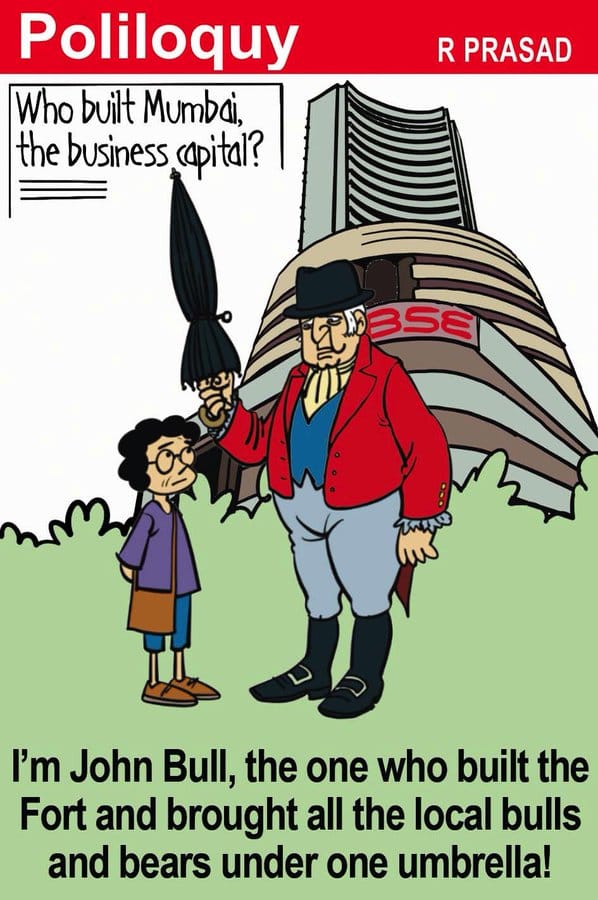 R. Prasad takes a jibe at Maharashtra Governor Bhagat Singh Koshyari for his remarks that Mumbai would cease to be the financial capital of India without Gujaratis and Rajasthanis, while alluding to John Bull – a fictional character deemed to be the personification of the UK – to point out how Mumbai flourished as an economic hub under British rule.