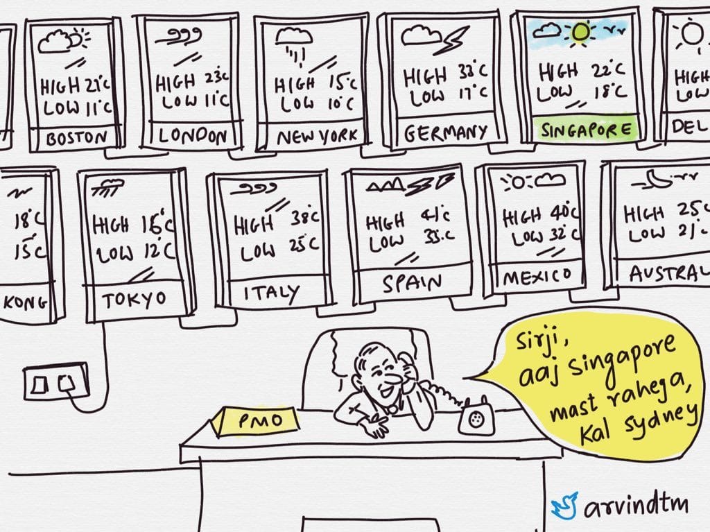 Cartoonist Arvind has a laugh at the prime minister’s jet-setting ways while north India faces an unbearable heat wave.