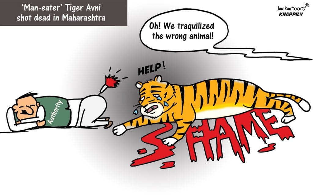 Jackartoons has a take on the killing of the six-year-old tigress, Avni, in Maharashtra. Avni was suspected of being a maneater.