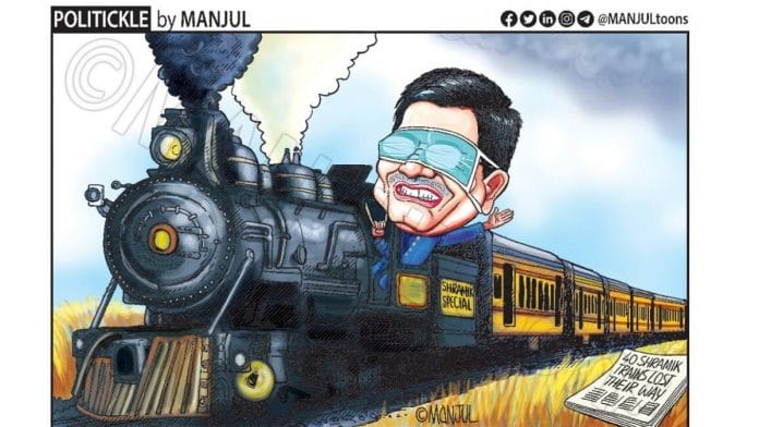 In today’s featured cartoon, Manjul imagines how Union Railways Minister Piyush Goyal must be wearing his mask right now since all his shramik trains appear to have lost all sense of direction.