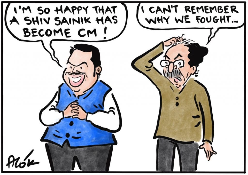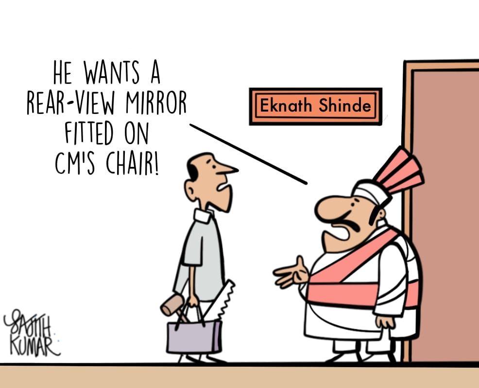 Alok Nirantar takes a dig at how, after the Maha Vikas Aghadi (MVA) government in Maharashtra led by Shiv Sena chief and former CM Uddhav Thackeray was brought down by a rebellion of Sena MLAs, the Bharatiya Janata Party (BJP) chose to back Sena rebel leader Eknath Shinde as CM instead of its own leader and ex-CM Devendra Fadnavis. Whether the chief minister’s chair would be occupied by someone from the BJP or the Sena was among the key contentions that led to the former allies parting ways in the aftermath of the 2019 Maharashtra assembly polls.