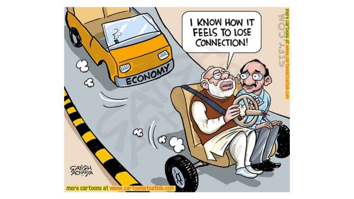 In today’s featured cartoon, Satish Acharya comments on the economic slowdown by suggesting how Prime Minister Narendra Modi can empathise with ISRO losing connection with its moon lander.