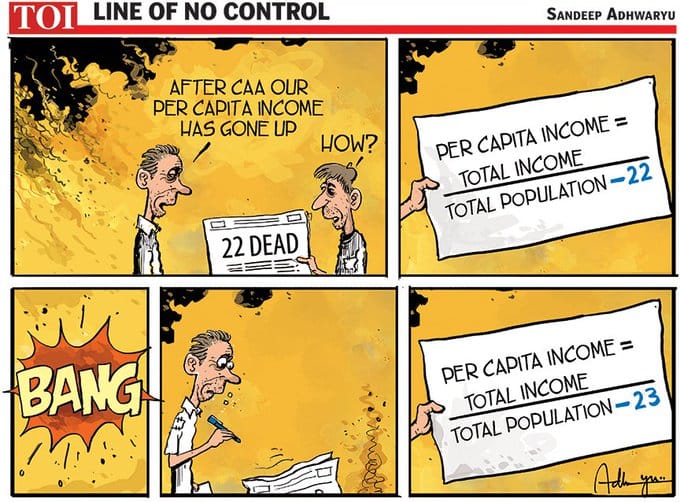 Sandeep Adhwaryu clubs the two burning issues of today — the country’s sinking economy and the rising death toll in violent clashes between police and protesters in different parts of the country.