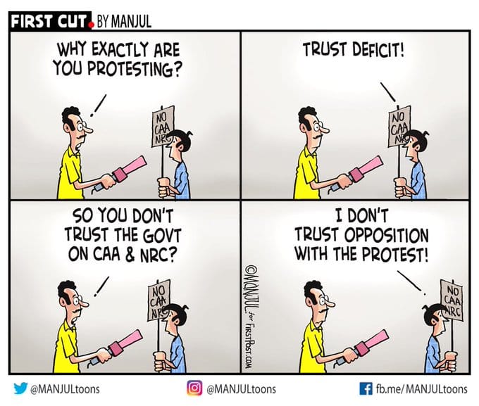 Amid nationwide unrest over the contentious Citizenship Amendment Act and NRC, Manjul points out that the trust deficit of the masses doesn’t only pertain to the government but also the opposition.