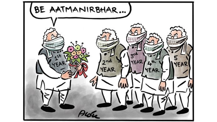 On the first anniversary of Prime Minister Narendra Modi’s second term, Alok Nirantar draws the PM’s self-reliance in congratulating himself; in today’s featured cartoon.