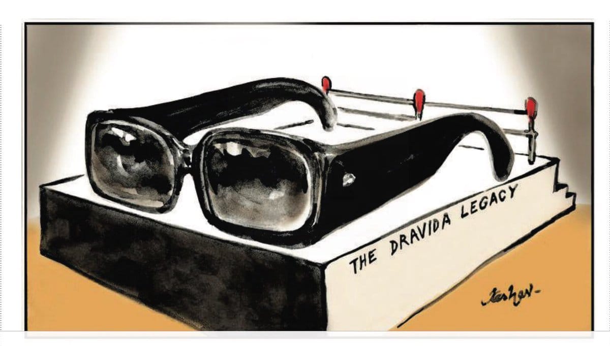 To mark the death of DMK patriarch Karunanidhi, Manjul’s illustration highlights the years of his birth and death.