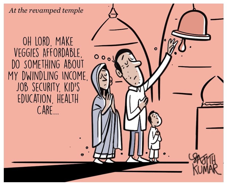 Sajith Kumar mocks the pomp and circumstance surrounding the Kashi Vishwanath temple at a time when the common person in India is facing a host of issues.