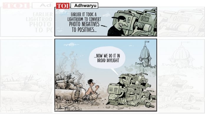 In today’s featured cartoon, Sandeep Adhwaryu takes a jibe at the ambitious Kashi Vishwanath Corridor project inaugurated by Prime Minister Narendra Modi Monday, which resulted in the displacement of several local people, loss of their centuries-old homes, and demolition of many buildings.