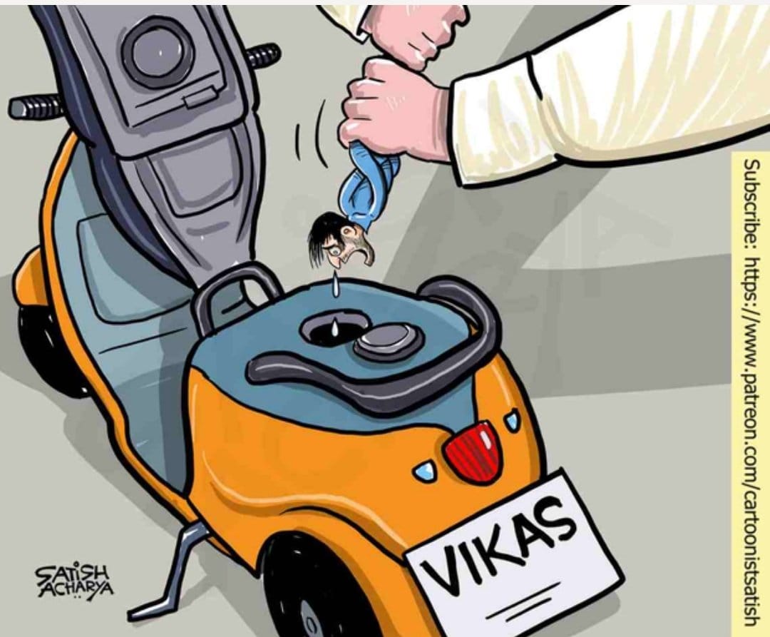 Satish Acharya also comments on the rising fuel prices and the Narendra Modi government’s message of ‘Vikas’.