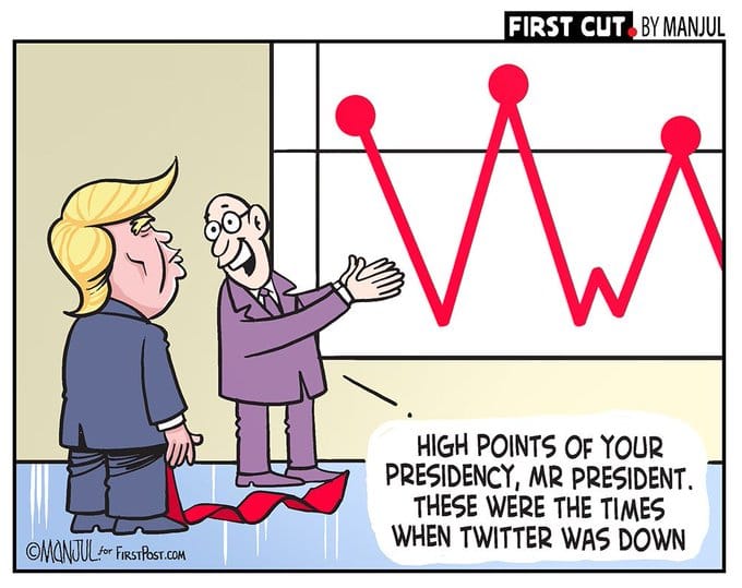 Manjul takes a jibe at US President Donald Trump’s Twitter habits, alleging that his presidency must have peaked yesterday since Twitter’s server was globally down.