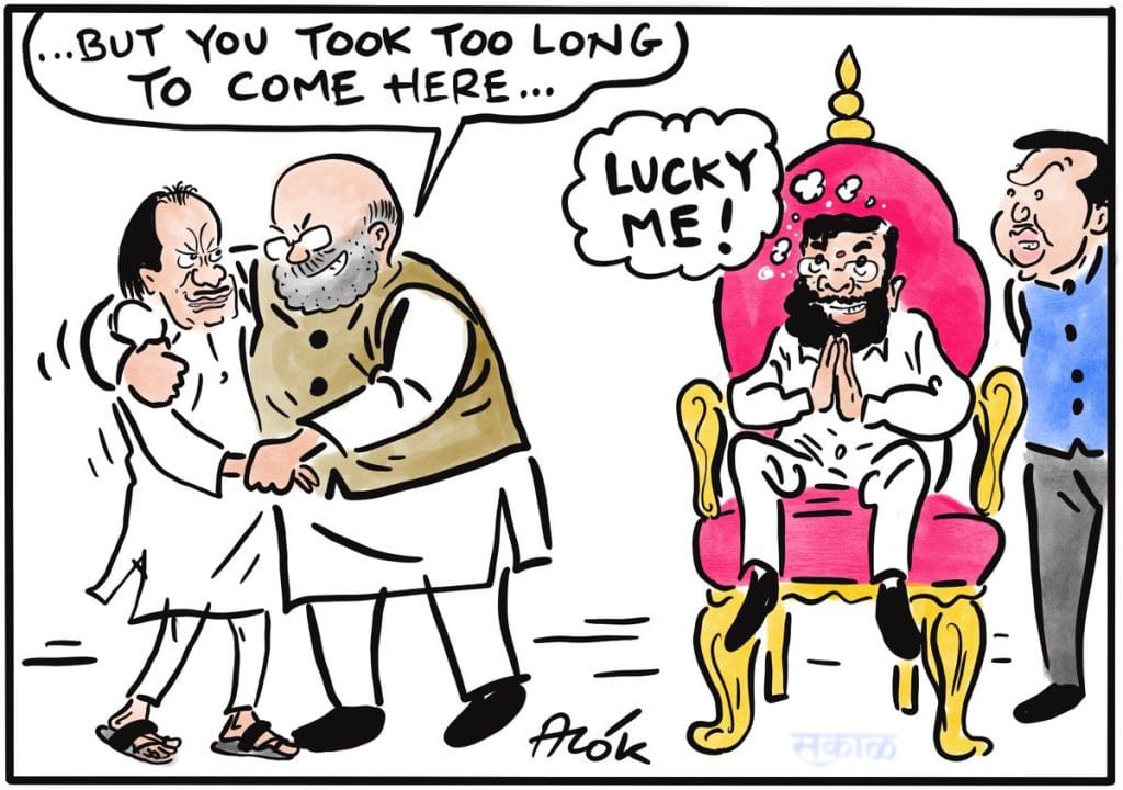 Alok Nirantar’s cartoon is a satirical take on Nationalist Congress Party leader Ajit Pawar’s recent decision to join Maharashtra’s Sena-BJP government, and how he may have missed the chief minister’s chair by joining late.