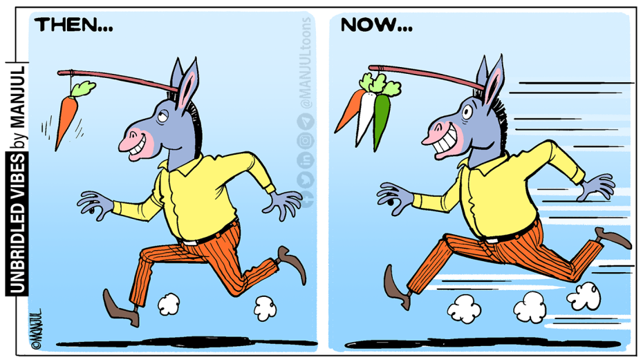 Drawing on the age-old ‘carrot-and-stick’ approach, Manjul comments on the ‘Azadi Ka Amrit Mahotsav‘ and how patriotism has been brought to the forefront of political discourse as India celebrates 75 years of Independence.