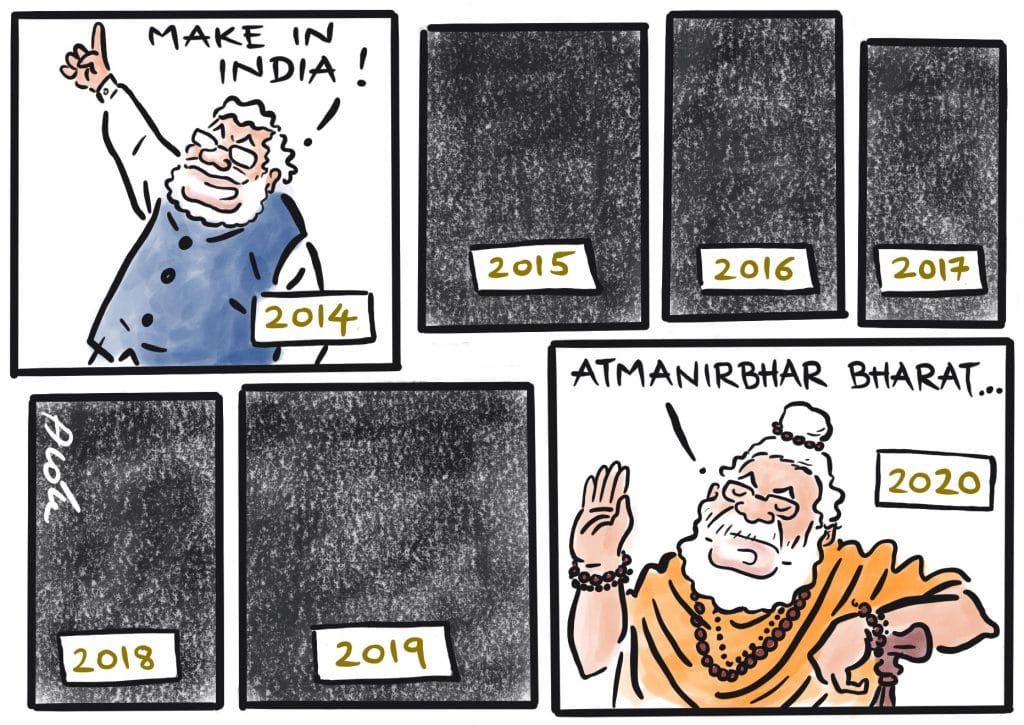 In today’s featured cartoon, Manjul takes a jibe at Prime Minister Narendra Modi’s nationwide address after he left a lot of questions unanswered, and instead emphasised on ‘atmanirbhar Bharat’ (self-reliant India).