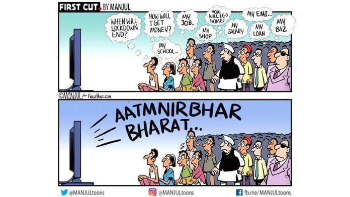 In today’s featured cartoon, Manjul takes a jibe at Prime Minister Narendra Modi’s nationwide address after he left a lot of questions unanswered, and instead emphasised on ‘atmanirbhar Bharat’ (self-reliant India).