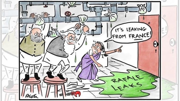 In today’s featured cartoon, Alok Nirantar takes a swipe at the Narendra Modi government, in light of the controversial Rafale deal, as French media reports of “suspicious payments” made to a middleman who had previously been arrested by India’s Enforcement Directorate.