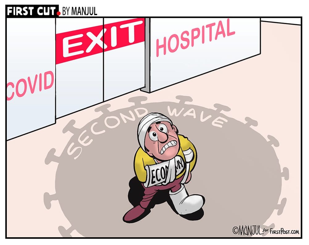 Manjul illustrates the ongoing “second wave” of the Covid-19 pandemic in India and its possible impact on the economy.