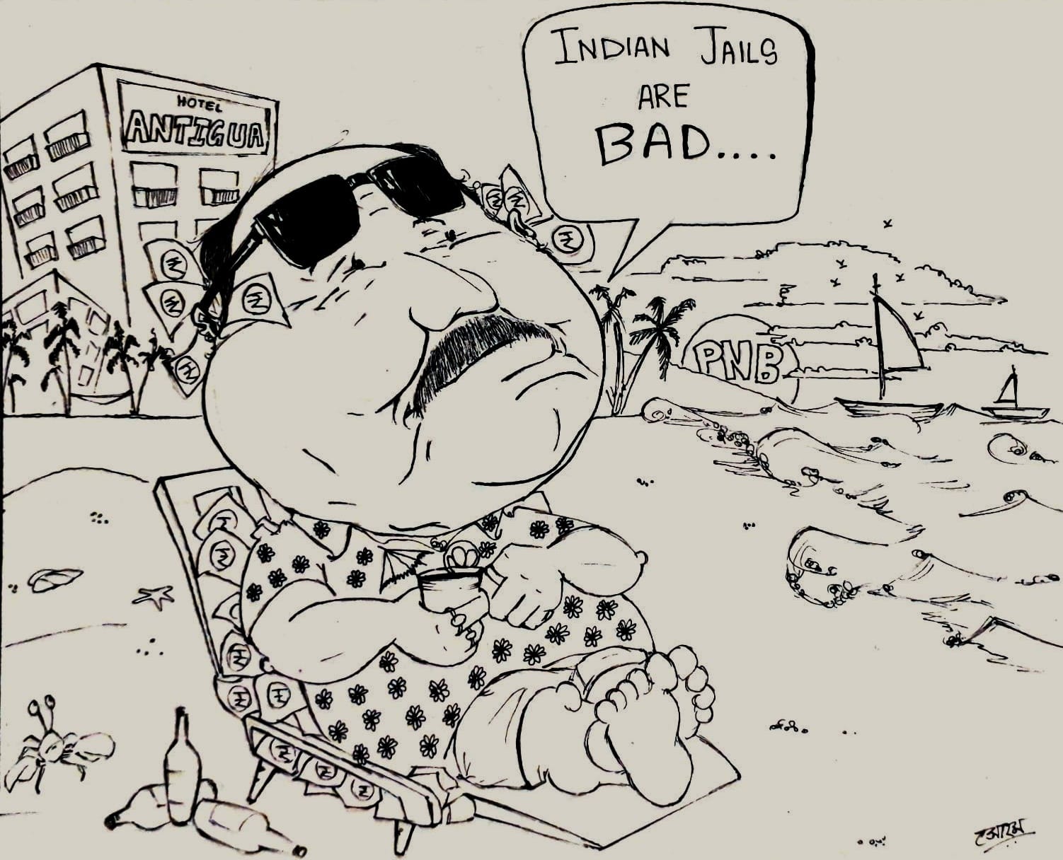 Soham Sen of ThePrint depicts PNB fraud accused Mehul Choksi lounging on a beach in his new homeland of Antigua, flush with money and complaining about the state of Indian jails.