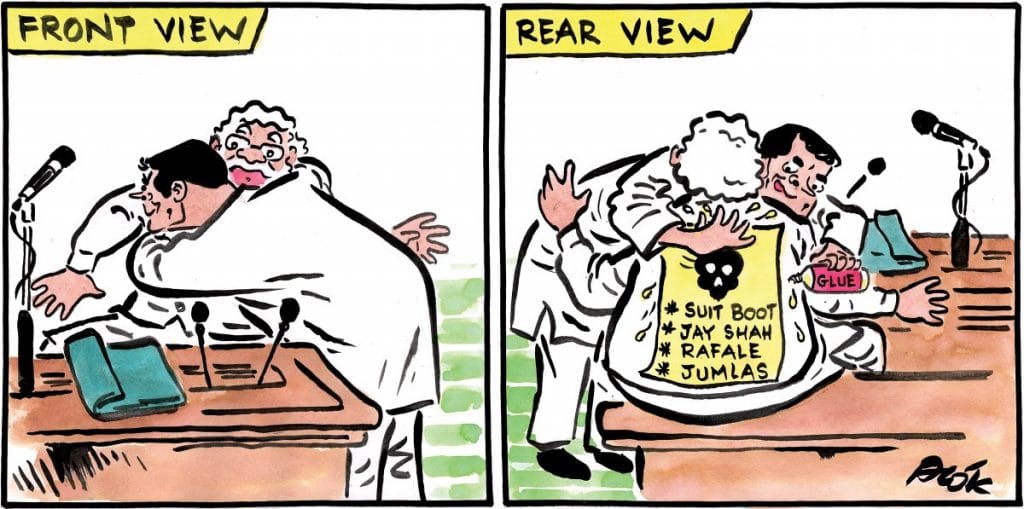 Alok Nirantar suggests that the hug was actually a ploy to highlight the Modi government’s flaws.