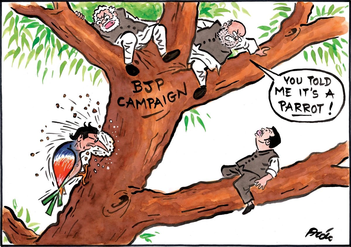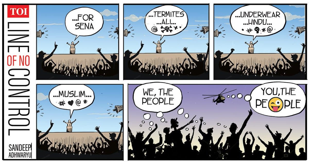 Sandeep Adhwaryu, for The Times of India, takes a dig at the political discourse slipping to a new low during elections.