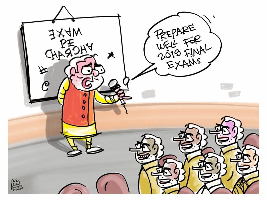 Mika Aziz refers to Prime Minister Narendra Modi’s recent ‘Exam pe Charcha‘ event with students, implying that his own preparations for the ‘final exam’, i.e. the Lok Sabha elections, are not going as well as he would’ve liked.