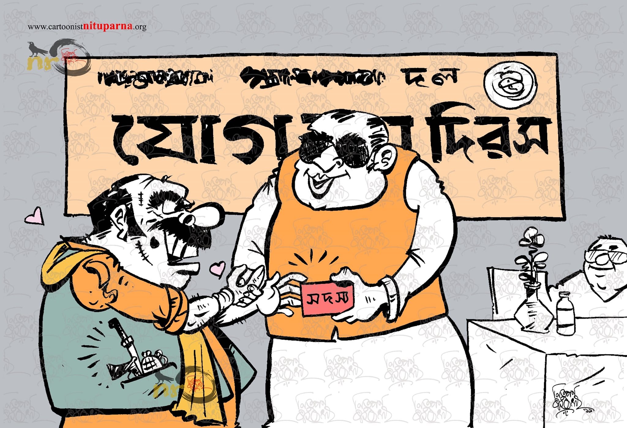 Nituparna Rajbongshi puns on the phrases ‘Yog Divas’ (International Yoga Day) and ‘Yog-dan divas (contribution day)’ to question the BJP’s membership criteria, which came under question with the induction of Malegaon blasts accused Pragya Thakur.