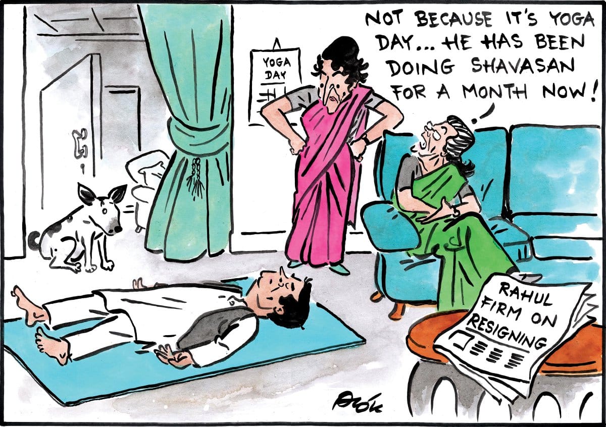 Alok Nirantar also draws on International Yoga Day, which was observed Friday, to take a potshot at Rahul Gandhi’s firm stance on resigning as Congress president after the party’s dismal performance in the Lok Sabha polls.