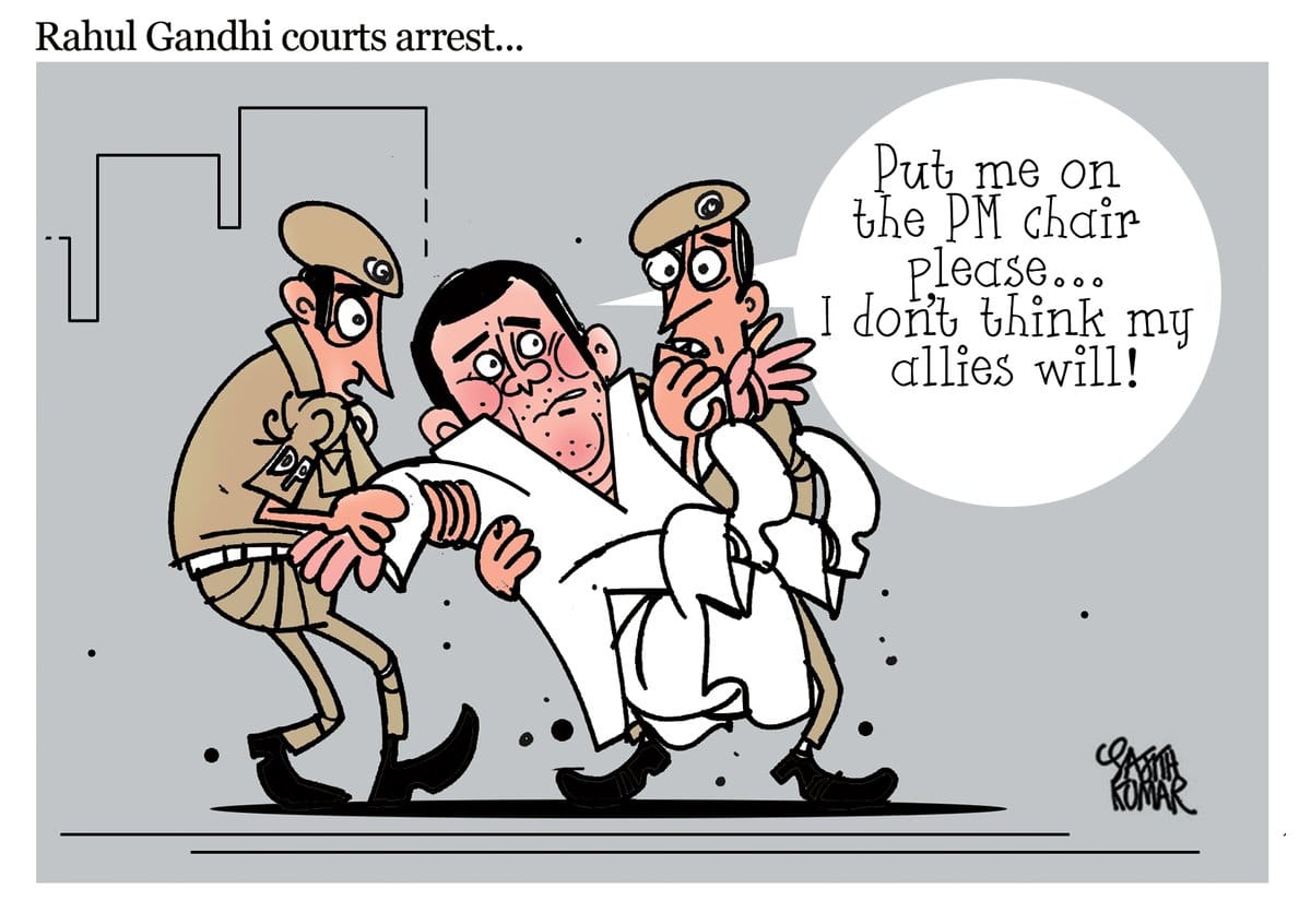 Sajith Kumar caught Rahul Gandhi pleading with policemen to put him in PM’s chair since he knows that allies will not make it happen.