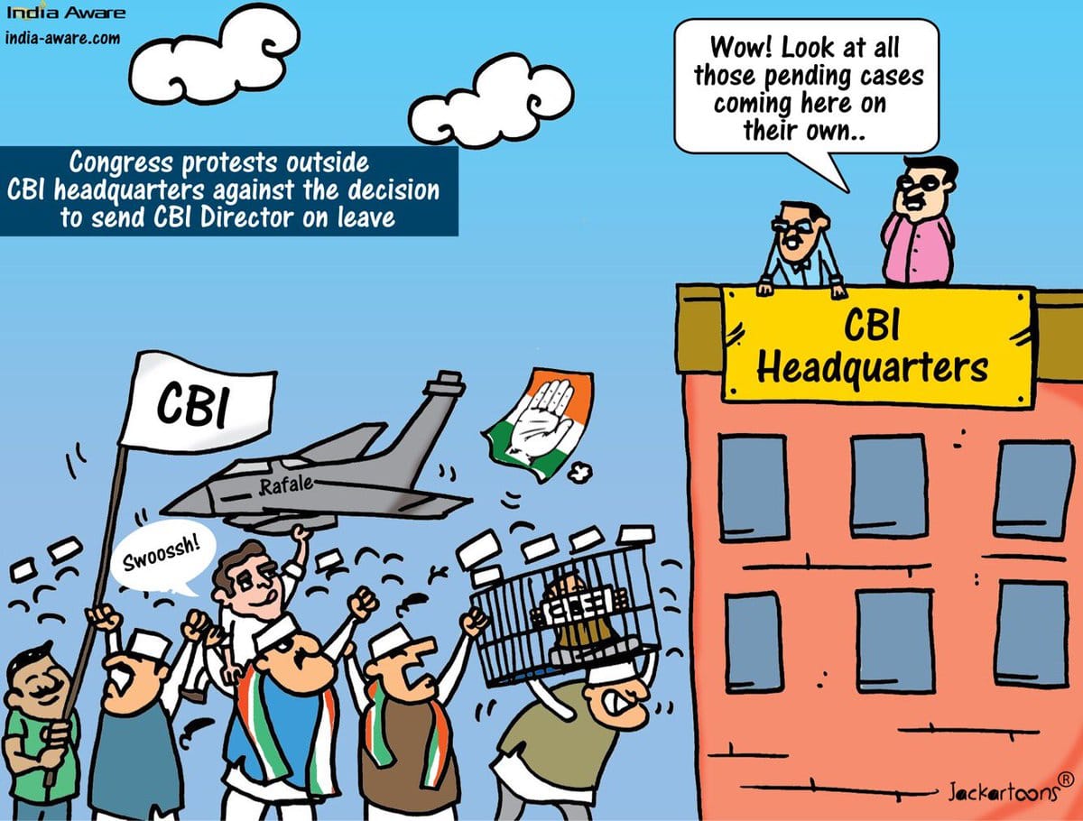 Sanket takes a swipe at Congress party’s protest outside the CBI building. He suggests that the party, which is protesting against the Modi government’s decision to sack CBI chief Alok Verma, itself has several cases pending with the agency.