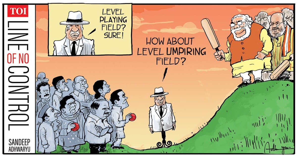 Sandeep Adhwaryu takes a swipe at the Election Commission of India as he depicts the uneven playing field in the election.
