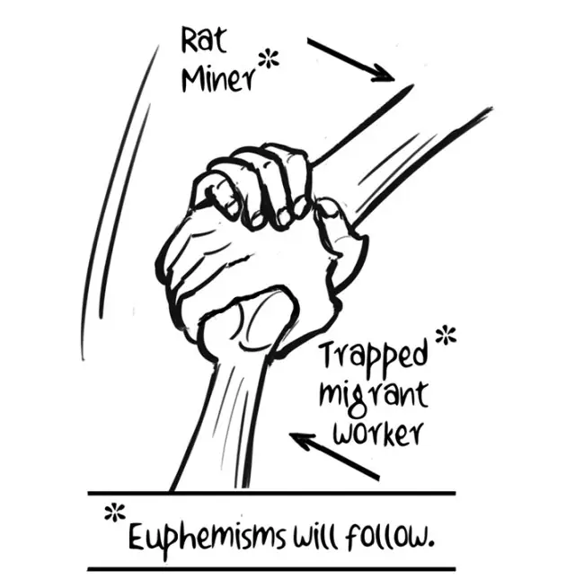 E P Unny’s cartoon, too, refers to the rescue of the 41 labourers in Uttarkashi. He points out the metaphorical significance of the event. After international machines failed, it was rat miners that came to the rescue, quite literally, and saved the lives of the labourers, most of them migrant workers.
