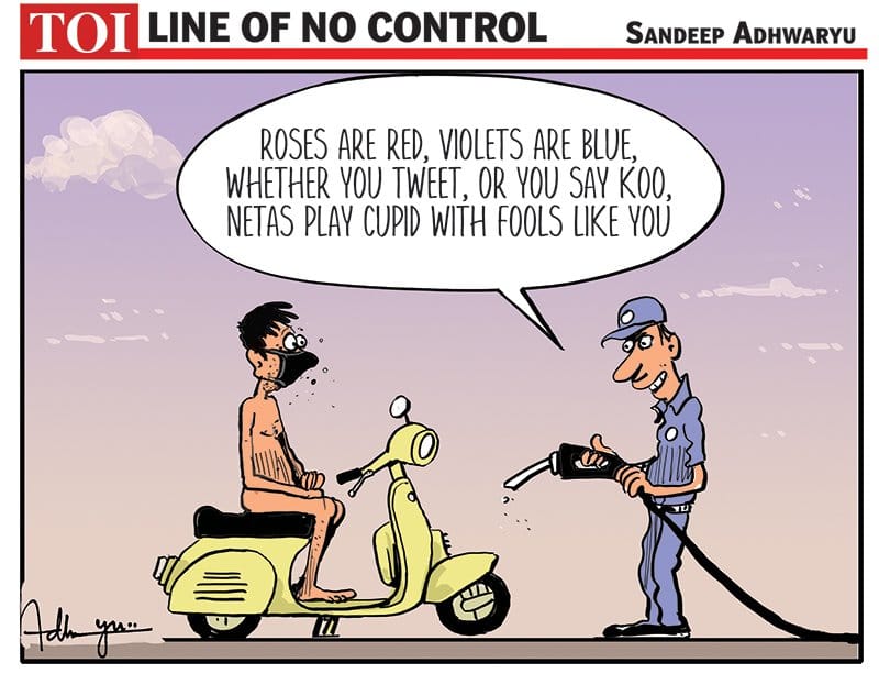 Sandeep Adhwaryu marks the occasion of Valentine’s Day by alluding to the continued rise in petrol prices nationwide.