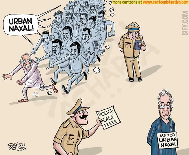 Cartoonist Satish Acharya takes a potshot at the police complaint filed against writer and playwright Girish Karnad by a Bengaluru-based advocate. Karnad Wednesday attended an event to mark the first death anniversary of Gauri Lankesh, wearing a placard that said, ‘Me Too Urban Naxal’.