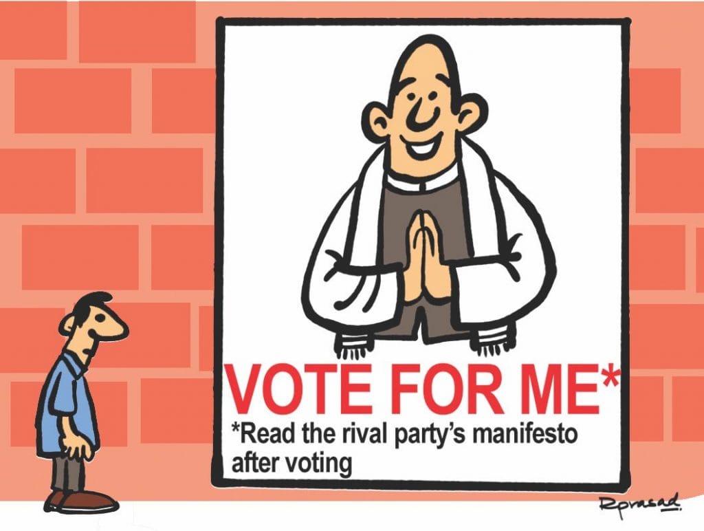 R. Prasad on the futility of voting for a party solely on its manifesto, as he hints that there are chances of the leader you’re voting for will change allegiances later.