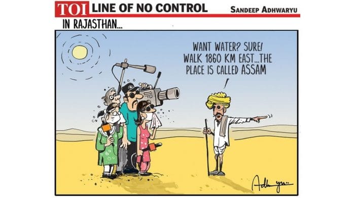 In today’s featured cartoon, Sandeep Adhwaryu reminds mainstream media that Assam is heavily flooded and demands their attention.