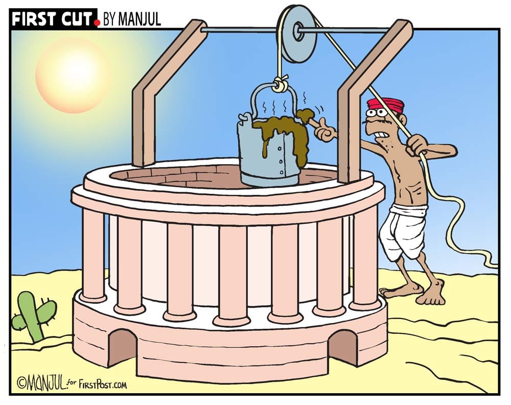 Manjul in Firstpost shows how the Parliament has descended into a state of redundancy. The cartoonist draws a well in the shape of the Parliament, and shows that only muck is left to fetch from it.