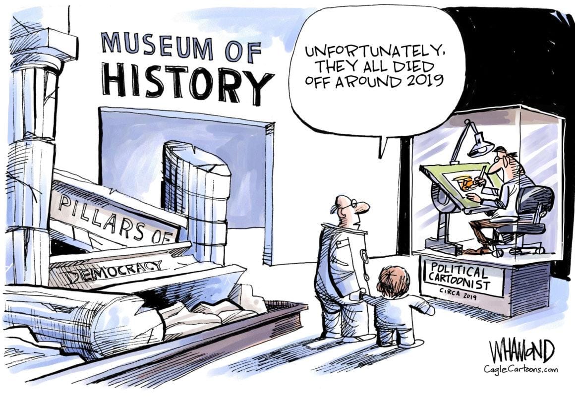 Dave Whamond takes a dig at The New York Times’s decision to abandon publishing political cartoons altogether. Weeks ago, the newspaper faced severe criticism for publishing a cartoon that was widely considered anti-Semitic.