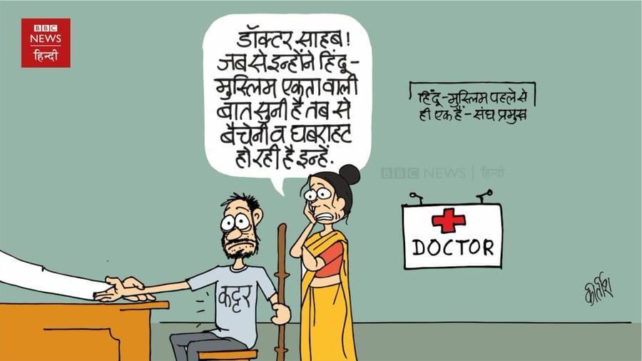 R. Prasad illustrates RSS Chief Mohan Bhagwat’s statement who recently spoke out against mob lynching and said that those indulging in such violent acts are against Hindutva.