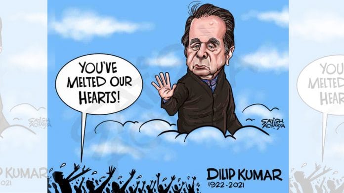 In today’s featured cartoon, Satish Acharya pays tribute to the legendary actor Dilip Kumar, who passed away Wednesday morning at the age of 98 after suffering from prolonged illness.
