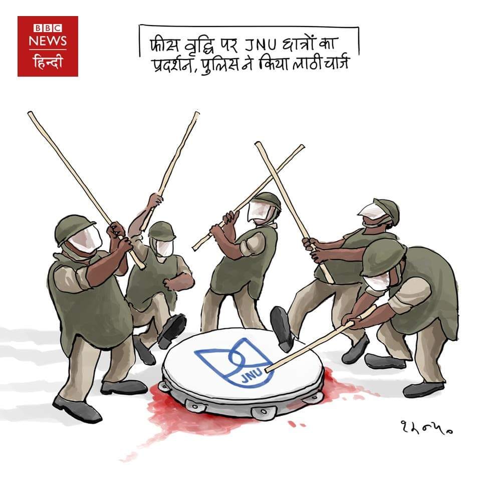 Gopal Shoonya illustrates the clash between JNU students and the Delhi Police that occurred on Monday.