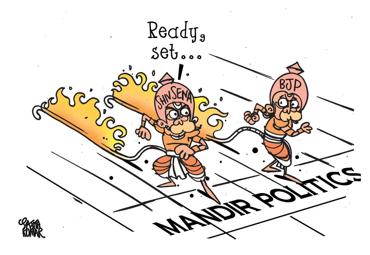 In Deccan Herald, Sajith Kumar comments on Shiv Sena chief Uddhav Thackeray’s arrival in Ayodhya with his family for Shiv Sena event in support of the Ram Temple. Kumar suggests a competitive temple politics between the Sena and the BJP.