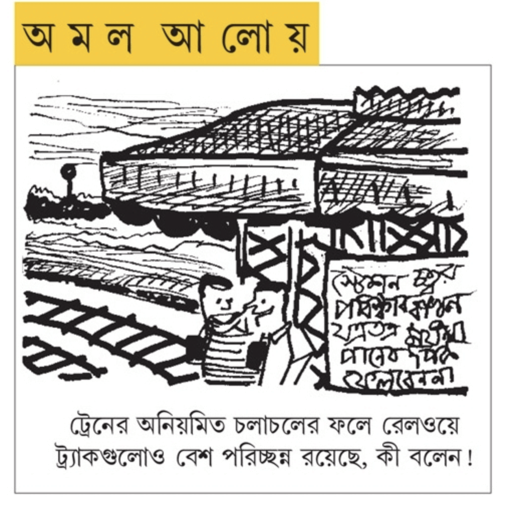 Amal Aloy cracks a pun on the cleanliness of railway tracks in West Bengal which are hardly in use owing to recurring protests and agitations on them.