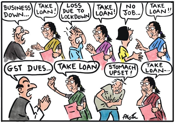 Alok Nirantar pokes fun at Finance Minister Nirmala Sitharaman’s ‘solution’ of offering loans for any and every economic crisis plaguing the country.