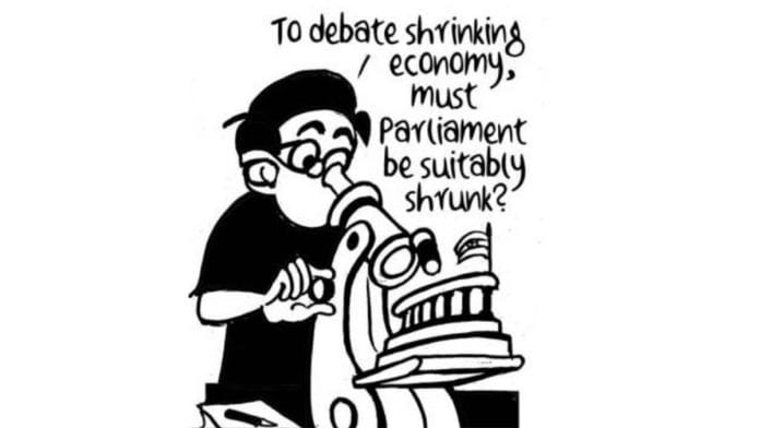 In today’s featured cartoon, EP Unny takes a dig at the Central government’s decision to do away with Question Hour in the upcoming monsoon session of Parliament even as the economy contracts by record levels.