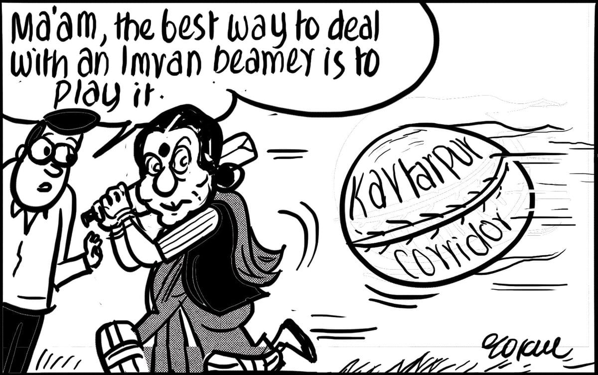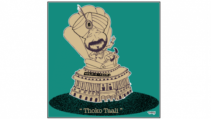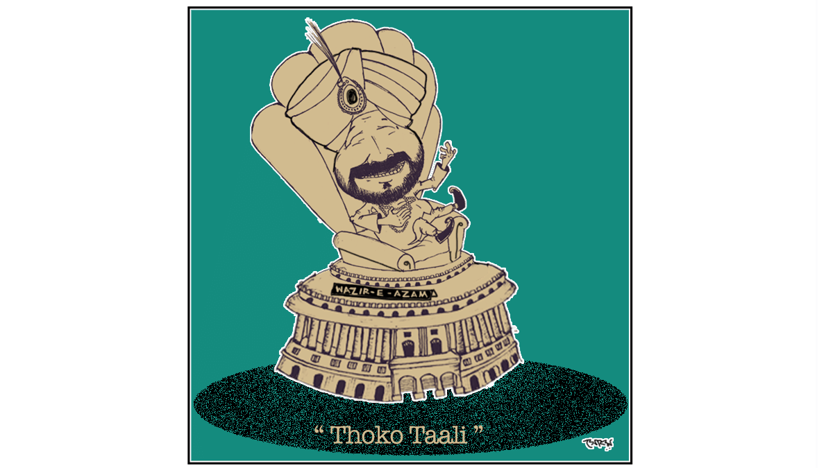 Cartoonist Soham Sen relies on Navjot Singh Sidhu’s signature punch phrase, ‘thoko taali‘, to take a jibe at Pakistani President Imran Khan envisioning Sidhu as the Prime Minister or ‘Wazir-e-Azam’ (as Imran called it) of India.